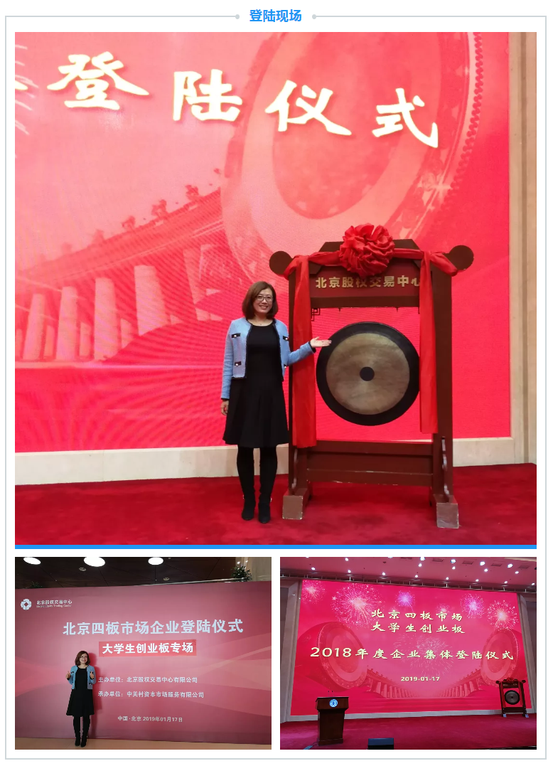 2019年1月17日上午,北京四板市场大学生创业板2018年度上板企业集体登陆仪式在中关村国家自主创新示范区展示中心会议中心一层隆重举行,包含国科天博-天博(中国)在内的近40家大学生创业企业在此敲响了资本市场之锣。