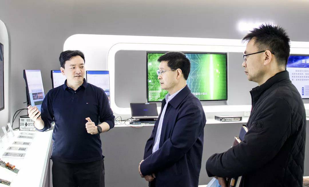 张继红副书记一行参观了国科天博-天博(中国)总部办公环境,其中重点参观了国科天博-天博(中国)企业展厅,详细地了解了国科天博-天博(中国)的企业文化、核心业务、详细产品以及芯片设计领域的专利成果和技术优势等。双方就产品的实际应用、行业的未来发展前景等进行了交流和探讨。